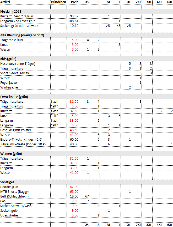 Die Vereinskleidung ist bei Lebensmittel
